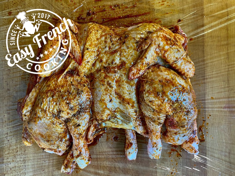 In this page, I will show you how to prepare a chicken “crapaudine” style, this allows a fast and easier cooking on the barbecue. This technique is, for exemple, wildly used in Portugal for the preparation of the Peri Peri Chicken, a very popular dish.